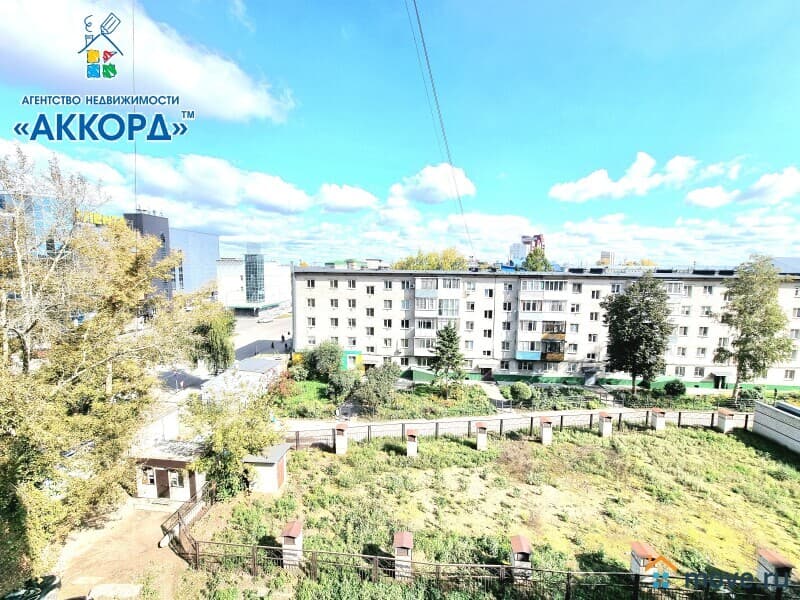 Окна квартиры выходят во внутренний двор, с большой открытой парковкой.