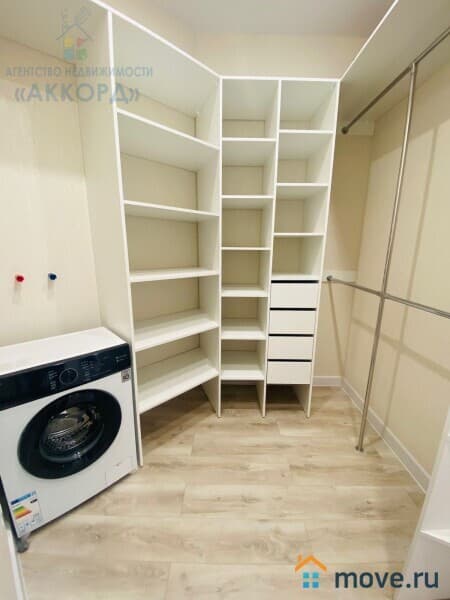 o Наличие отдельной большой гардеробной комнаты с удобной системой хранения обеспечит порядок и позволит хранить вещи организованно.